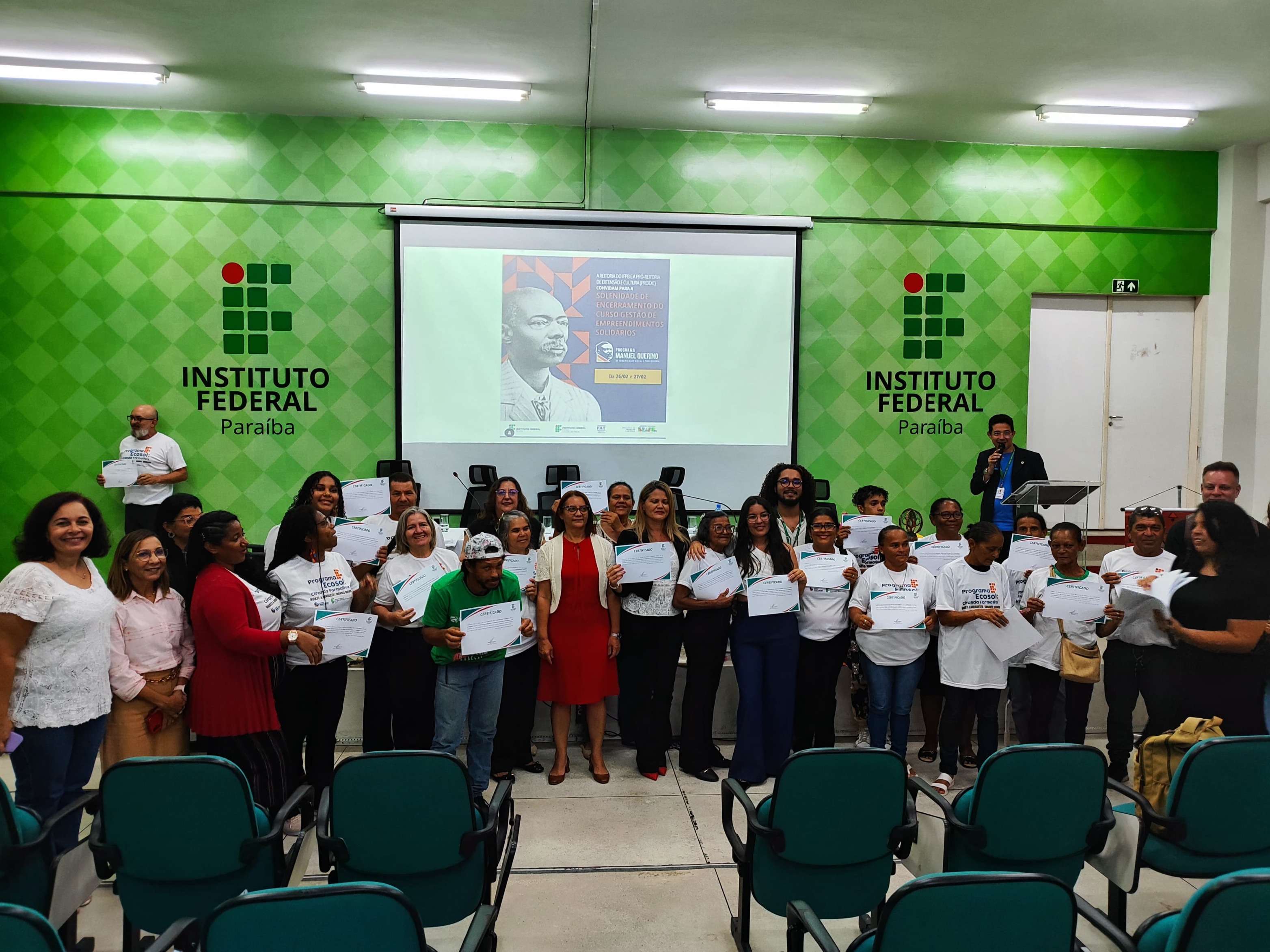 Durante seis meses 64 alunos fizeram o Curso FIC de Gestão de Empreendedorismo Coletivo. O público formado em sua maioria por catadores, artesãos, agricultores familiares e gestores públicos da Zona da Mata, Cariri e do Brejo foi capacitado em temas como planejamento, administração, finanças e comercialização. ”Esse curso foi uma excelente oportunidade para as pessoas entenderem o que é esse movimento da economia solidária que propõe uma produção coletiva, solidária em todos os sentidos” afirmou o estudante Celso de Morais.