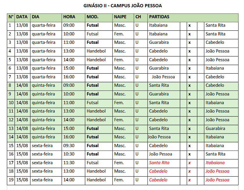 Campus João Pessoa recebe atletas de 06 campi até o dia 15 de agosto. Essa é a oitava edição dos jogos neste formato