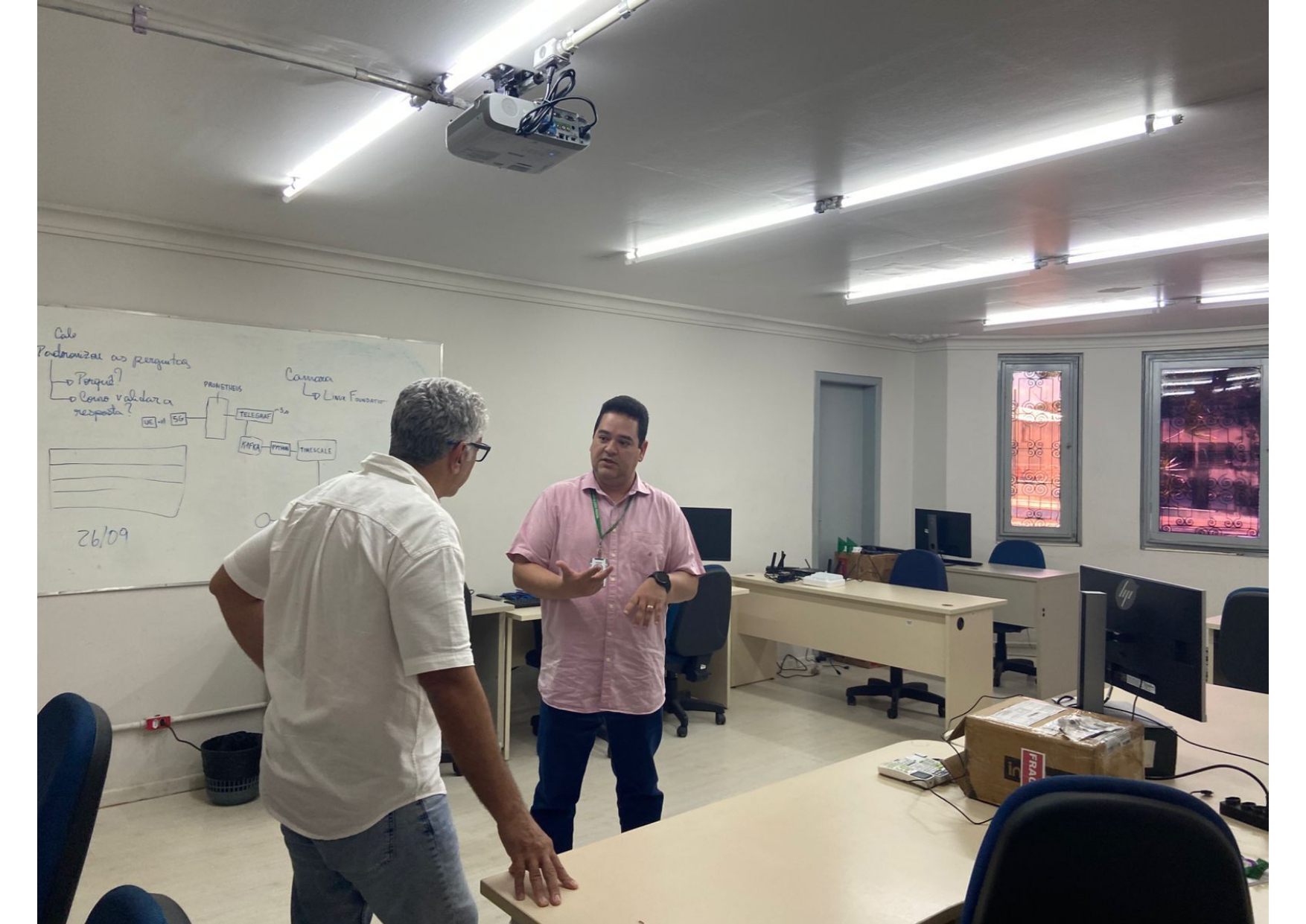 Pela manhã, o professor Erick Melo, que também é coordenador da Unidade Embrapii do IFPB, apresentou a infraestrutura operacional da sede. À tarde, ele detalhou as ações desenvolvidas em pesquisa e desenvolvimento, capacitação tecnológica (extensão tecnológica) e o envolvimento de estudantes dos programas de mestrado do IFPB, especialmente do PPGTI, nos projetos em execução.