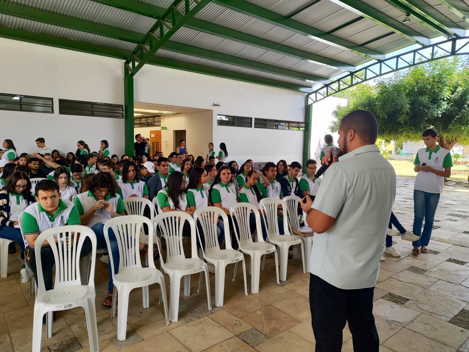 O primeiro encontro foi com os estudantes que lotaram o pátio da unidade. A equipe da Reitoria conversou com os jovens sobre o funcioamento da Ouvidoria, explicou os tipos de assédio e exemplificou situações que se caracterizam como desrespeito, discriminação ou violência no ambiente escolar.