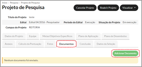 2. Anexe o formulário preenchido na aba “Documentos” do projeto no SUAP.