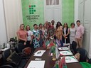 Reunião no gabinete da Reitoria no dia 07 de outubro que contou com as presenças da Pró-Reitora de Ensino, Mary Roberta, Diretora de Extensão Popular e Rural da Proexc, Maria José Bezerra, Pró-Reitora de Pesquisa, Pós-Graduação e Inovação, Silvana Cunha, Diretor do Campus João Pessoa, Neilor César, Diretora de Ensino do Campus Cabedelo, Turla Baptista, Diretora de Ensino do Campus Campina Grande, Ana Cristina Alves, além do professor Rafael José Barros, representando a Diretoria de Ensino do Campus João Pessoa, da servidora Cinthia Saska, e representantes do CLIPE e do PEC-G.