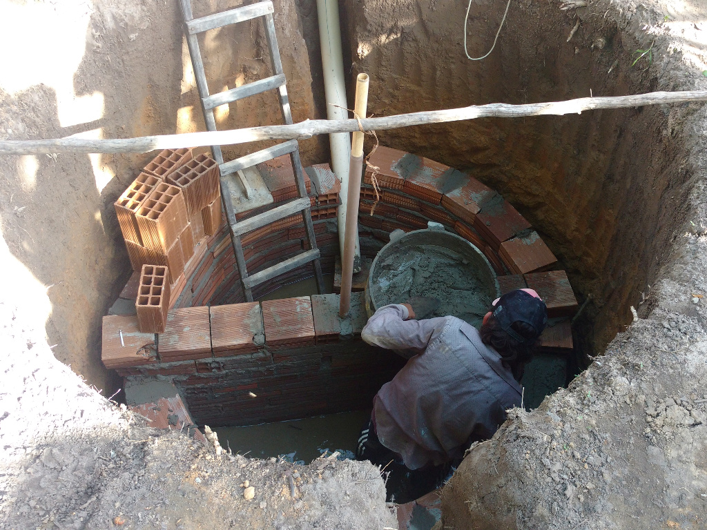 Logo após foi dado início a Construção do selo d’água composta por três partes, parede interna, que separa a água do selo, da mistura de fermentação, Fosso local do espaço entre as duas paredes do selo de água, onde o gasômetro se movimenta e parede externa que separa a água do selo do meio ambiente.