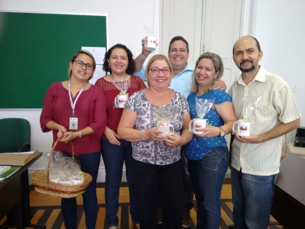 Foram distribuídas canecas com servidores, estagiários e terceirizados.