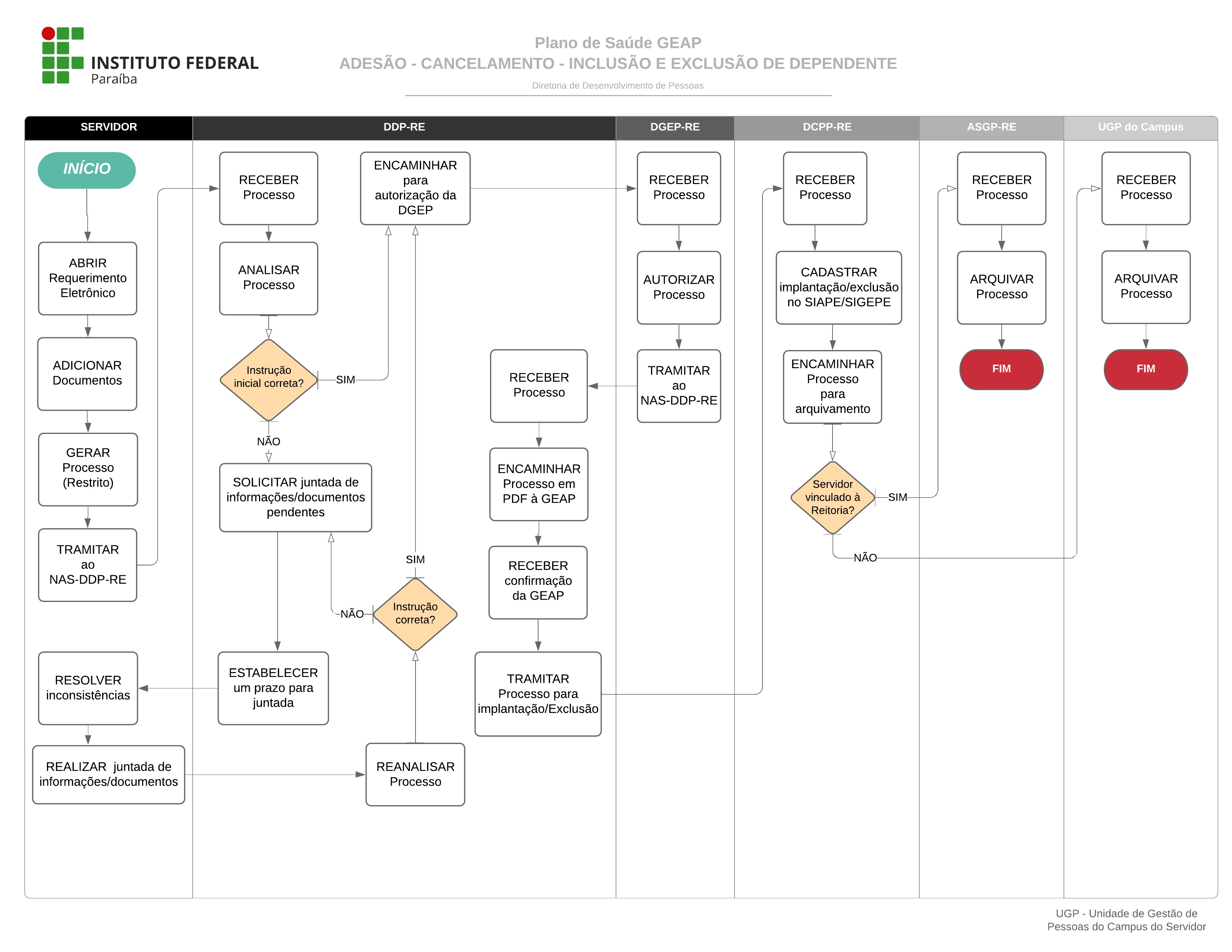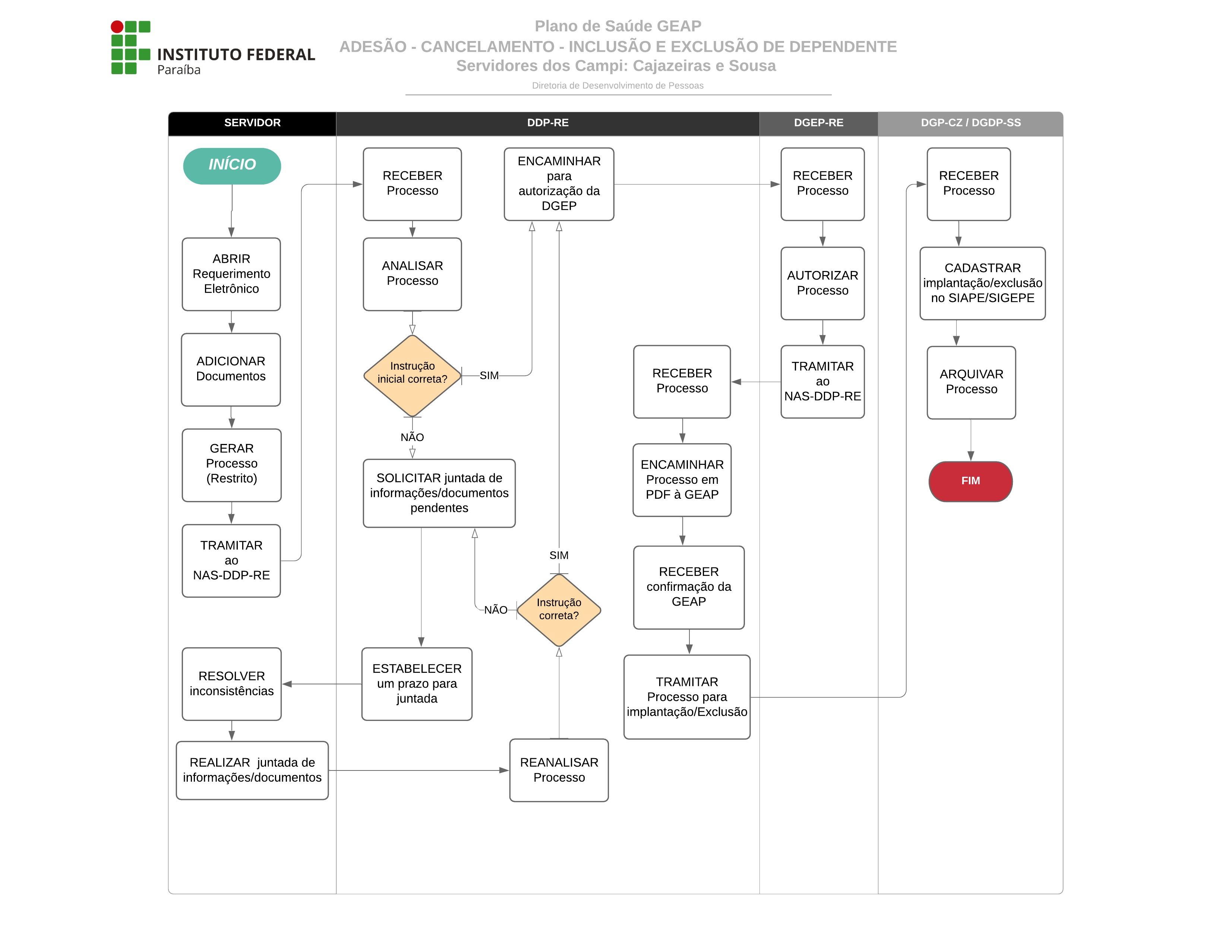 Fluxo de processos de adesão aos planos, como também de inclusão ou exclusão de dependentes dos servidores dos Campi Cajazeiras e Sousa